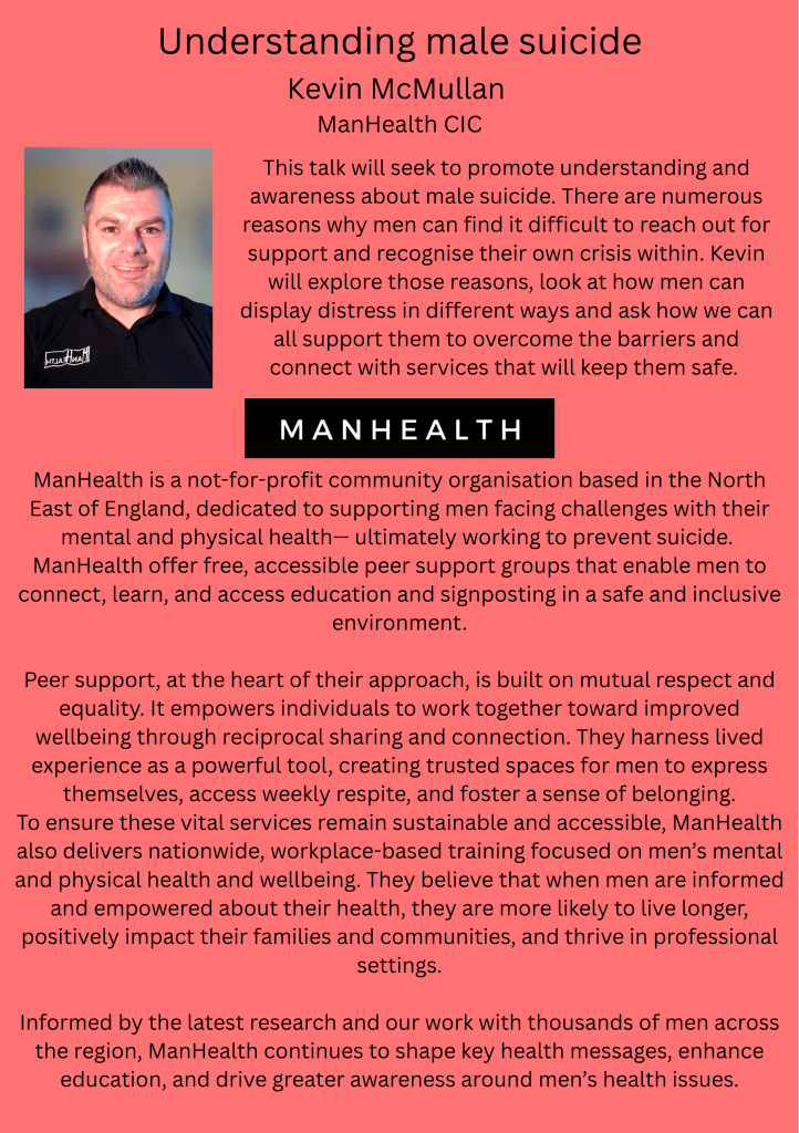 Join us on World Suicide Prevention Day, 10th September, at Teesside University to hear from a wide variety of speakers and to meet local organisations.